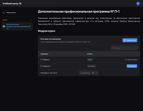 Войдите в систему, изучите модули курса и подтвердите квалификацию тестированием